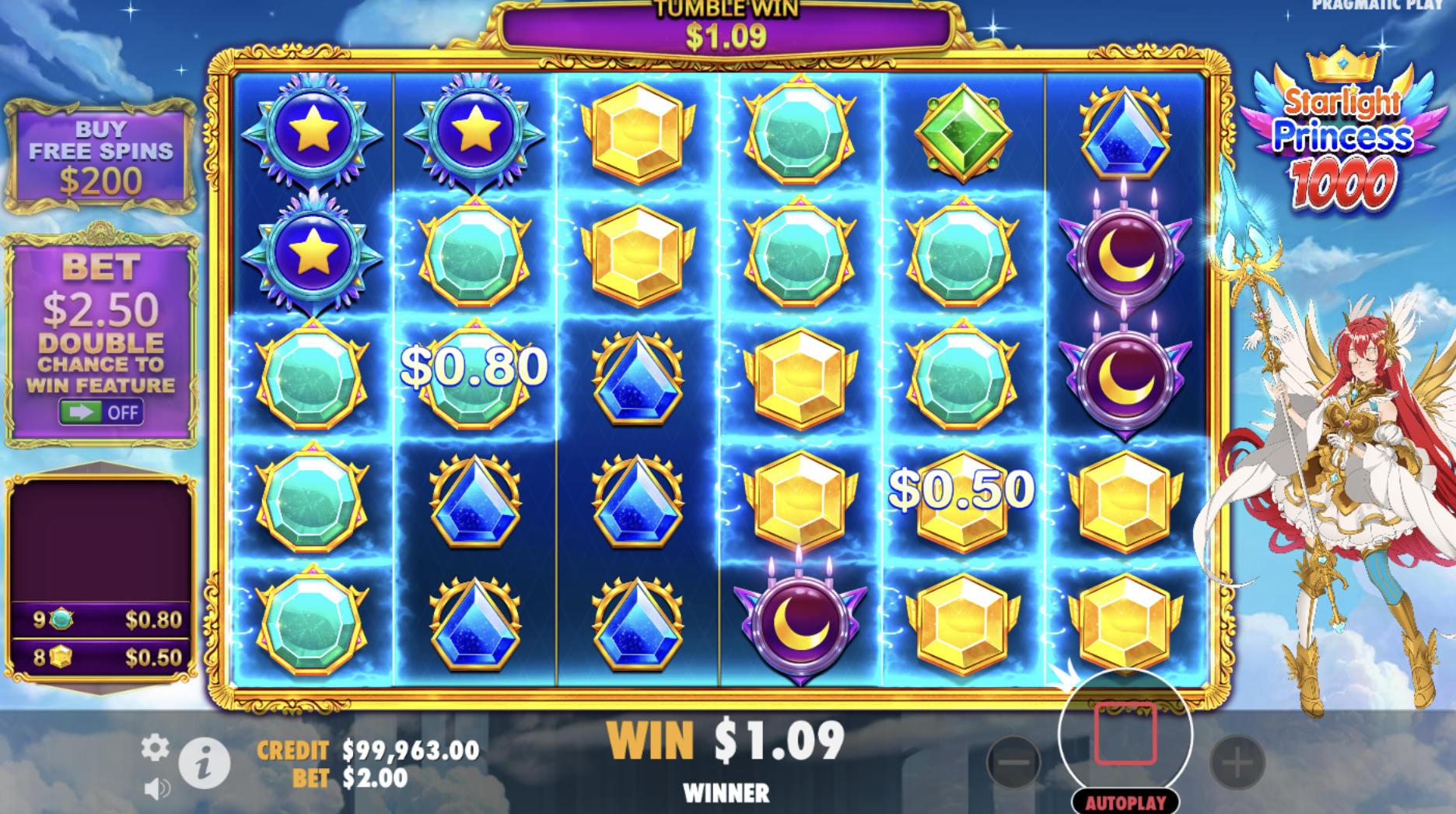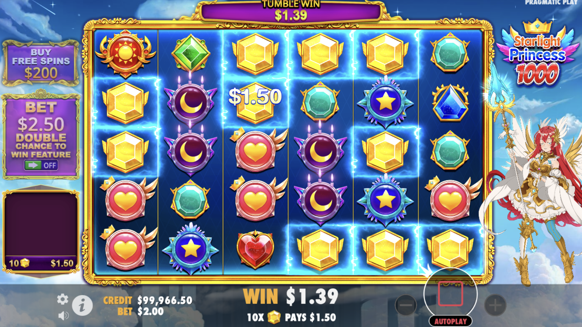 Οι παίκτες που αναζητούν μεγάλες νίκες θα λατρέψουν το Starlight Princess 1000, καθώς προσφέρει μέγιστο κέρδος 15,000x το ποντάρισμά σας. Ο κουλοχέρης έχει υψηλή μεταβλητότητα και ένα ανταγωνιστικό RTP 96.5%. Αυτό σημαίνει ότι οι νίκες μπορεί να μην είναι συχνές, αλλά όταν συμβαίνουν, μπορεί να είναι μεγάλες, κάνοντας το παιχνίδι συναρπαστικό σαν ένα τζακπότ.